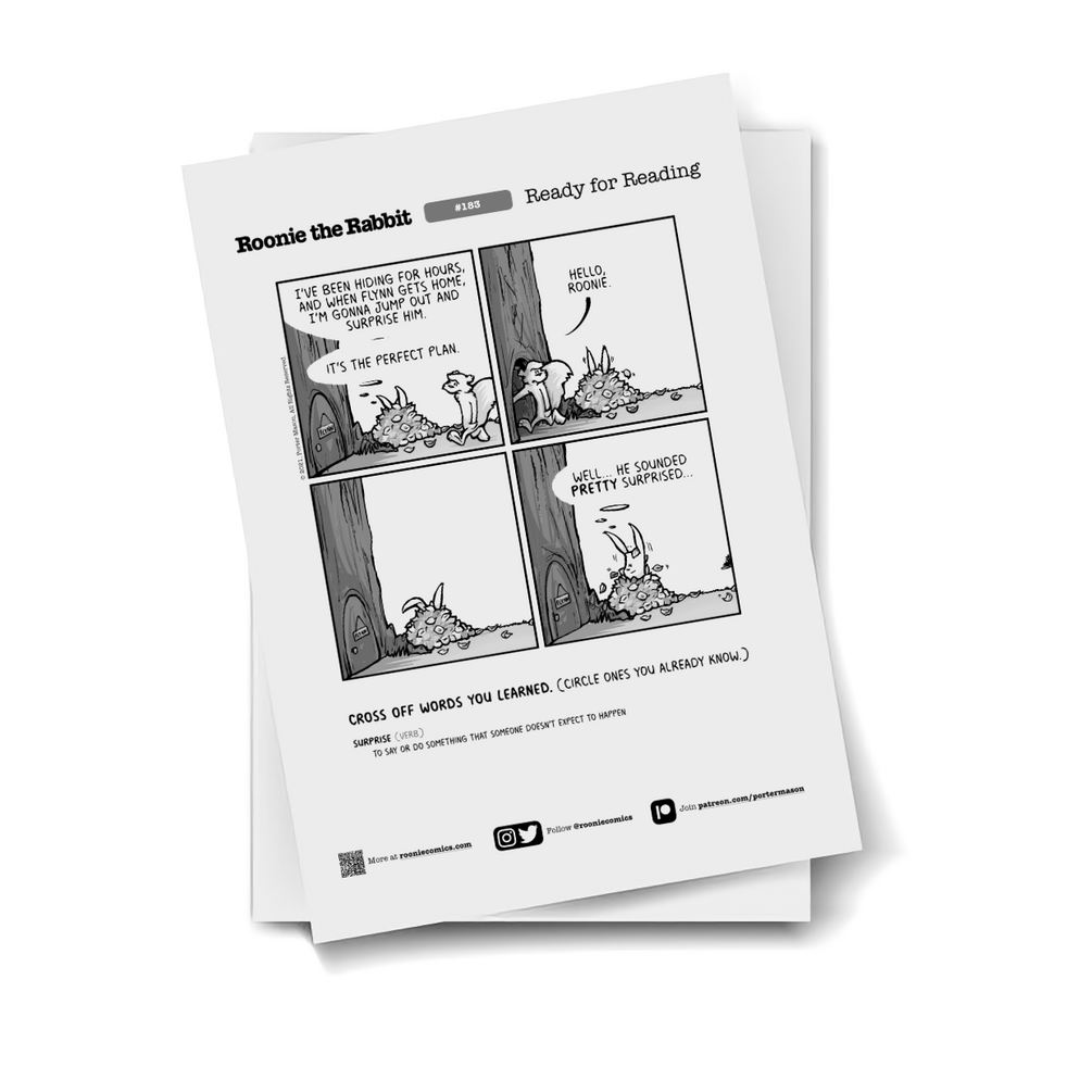 This PDF includes cute, funny comics (including Patreon exclusives), in a neat printable format, along with simple definitions for any words that are tricky or new for kids.